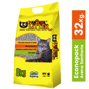 Panther Litter®️ es una Arena Sanitaria para Gatos tipo Premium, diseñada para la comodidad de tu gato y también para tu tranquilidad, sus súper propiedades permiten una limpieza más sencilla y rápida, evitando malos olores, posibles alergias y molestos desperdicios. Panther Litter®️ está compuesta por granos cuidadosamente calibrados y con una fórmula secreta considerada como uno de los productos con mayor capacidad de absorción, impregnada de un sutil y delicioso aroma a limón, aglomera la orina y las heces, separándolas del resto de arena sin generar desperdicios, retiene malos olores y al no contener polvo es 100% amigable con tu gato.